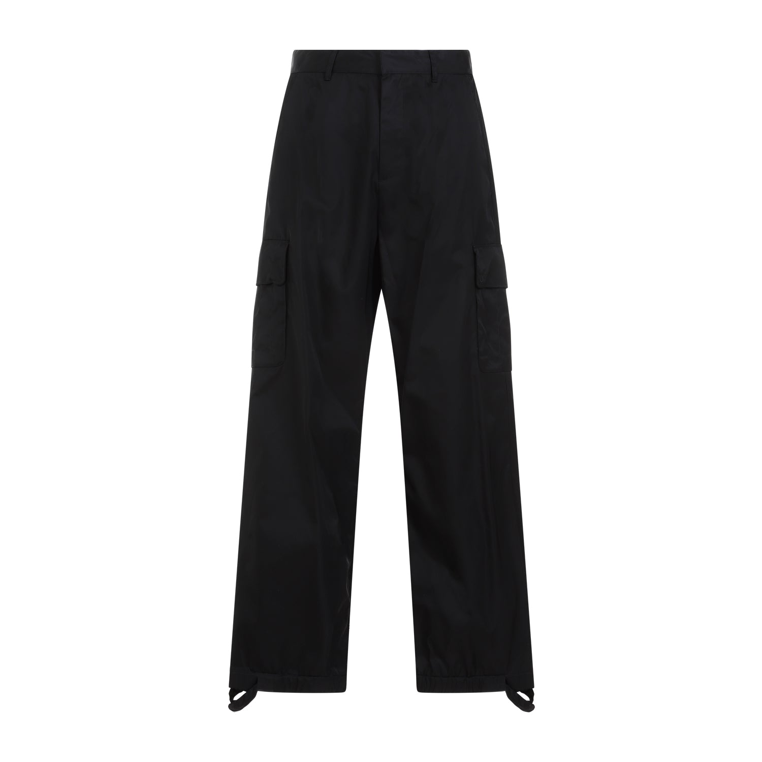 Off White Black Cargo Pant. Crafted in polyamide and polyurethane blend. Front concealing zipped and hook fastening, belt loops, side pockets, back slit pockets, cargo pockets on the leg, adjustable and straight hem.