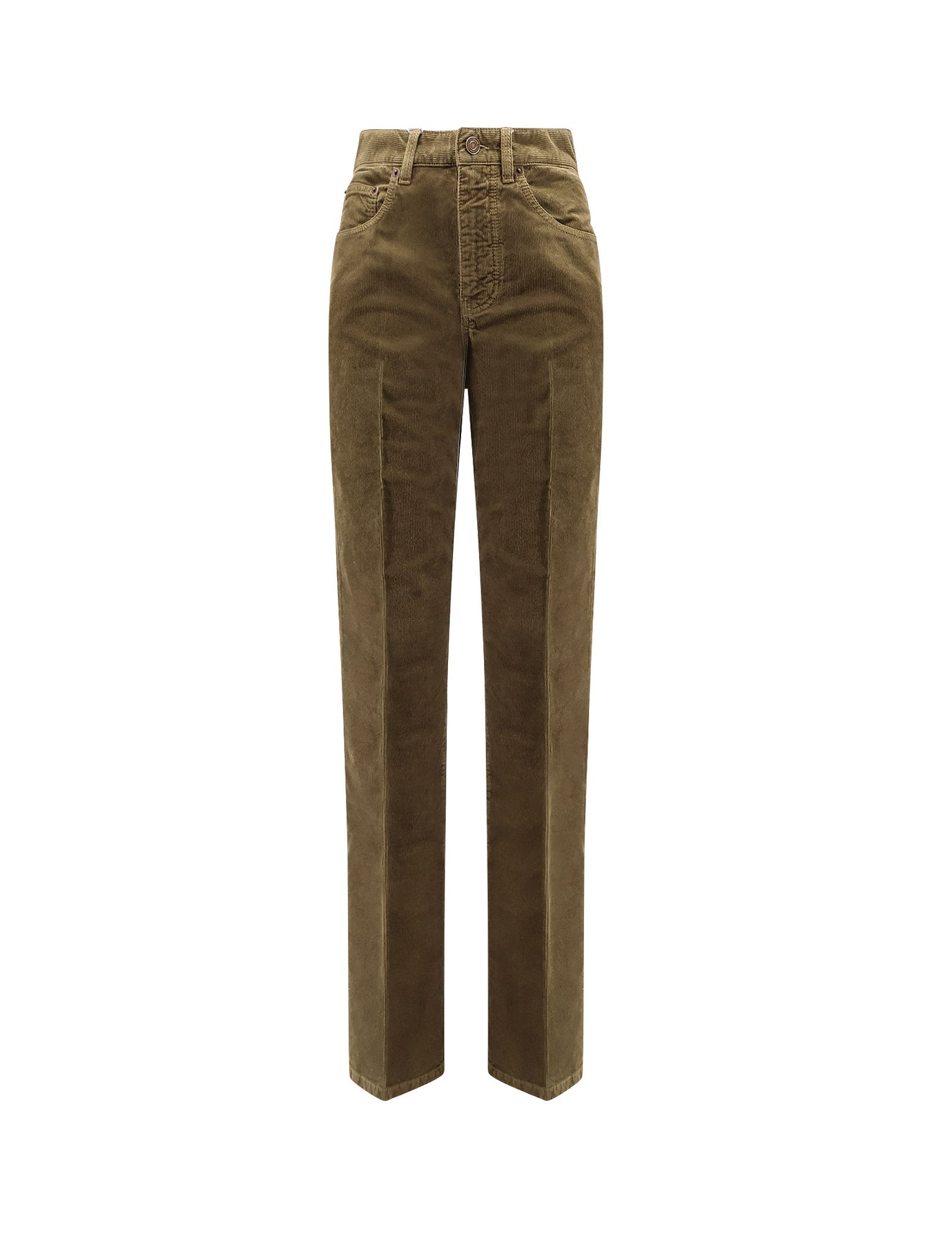 Button and zip closure Five pockets High waist and wide leg Made in Italy 100% organic cotton SKU: 705103Y29IA3564