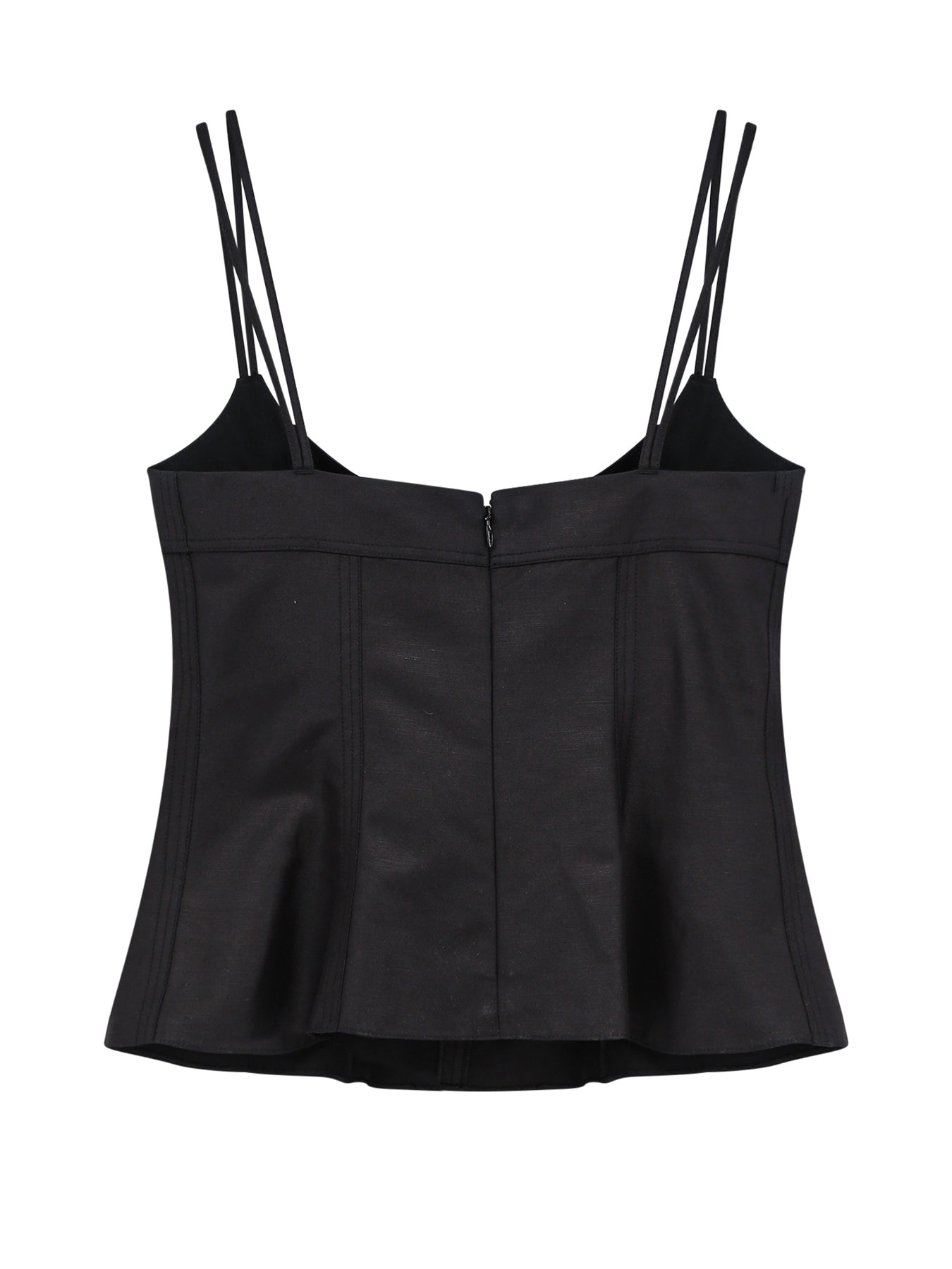 SKU: 6T01583DU401_1000 - Closure with zip on the back double shoulder strap stitching detail made in italy 40% polyamide 36% sustainable cotton 24% linen