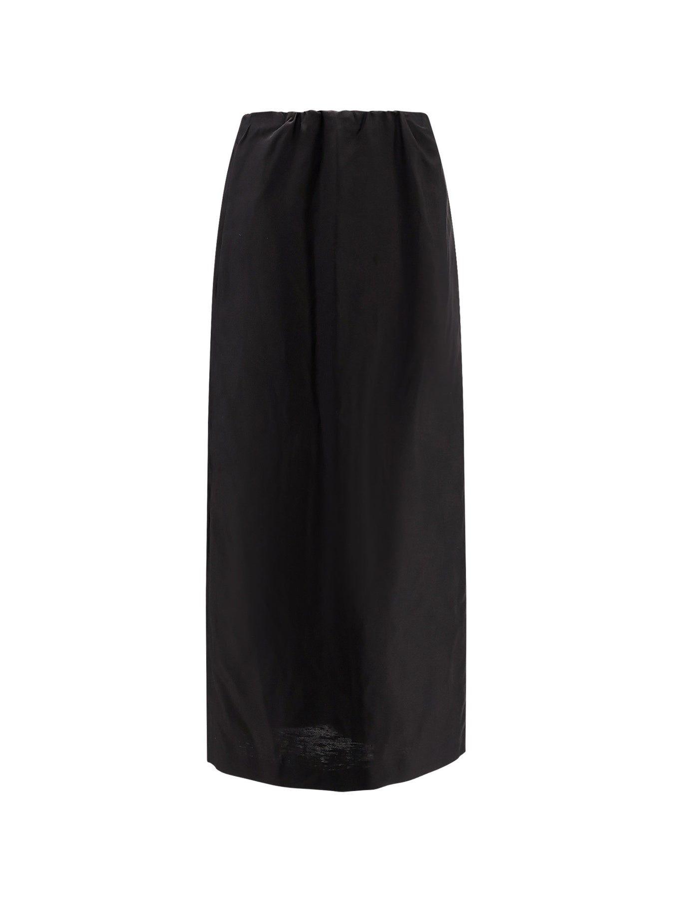 Elastic waistband Side welt pockets Back slit Made in Italy 69% cotton 31% silk SKU: 9045W3838_BLK