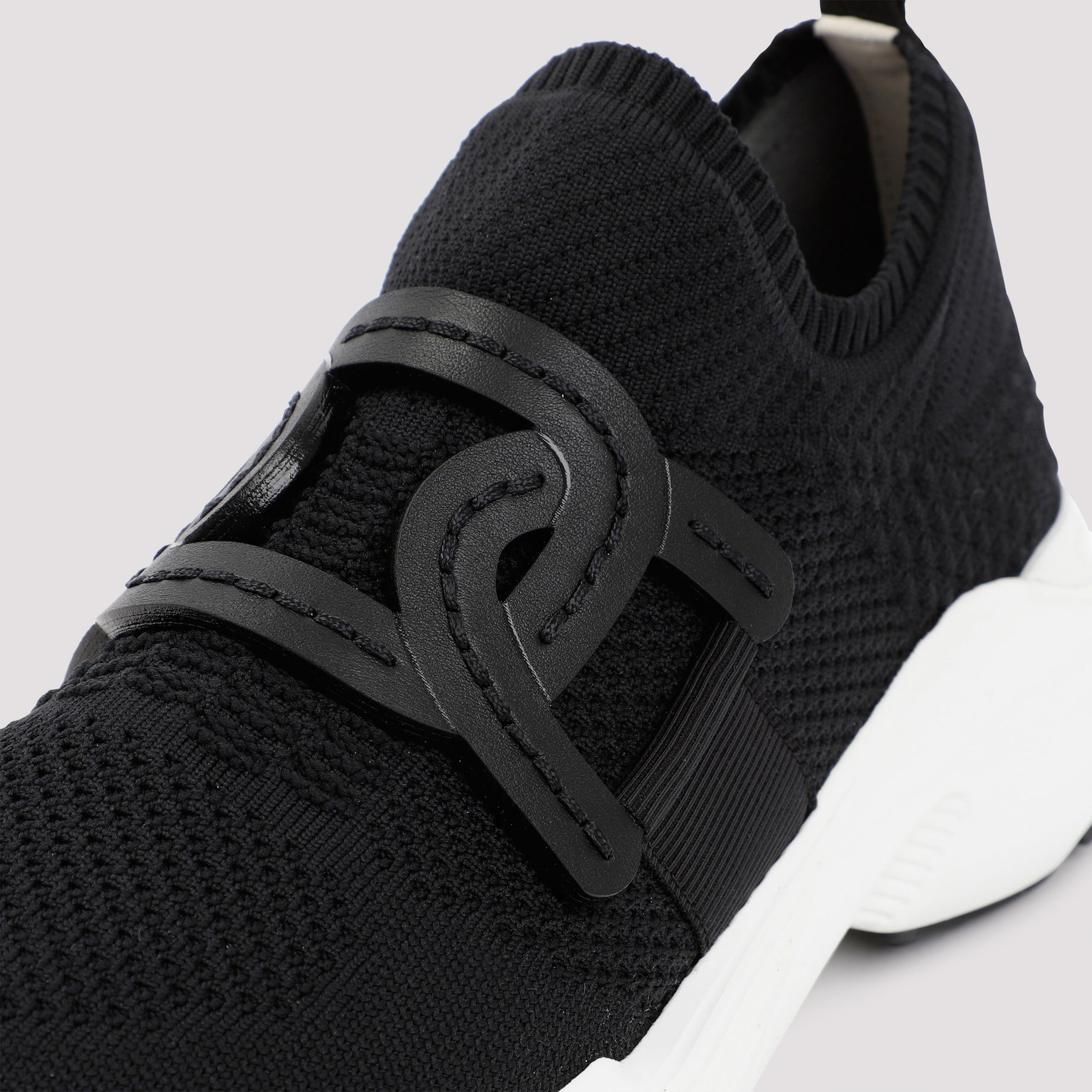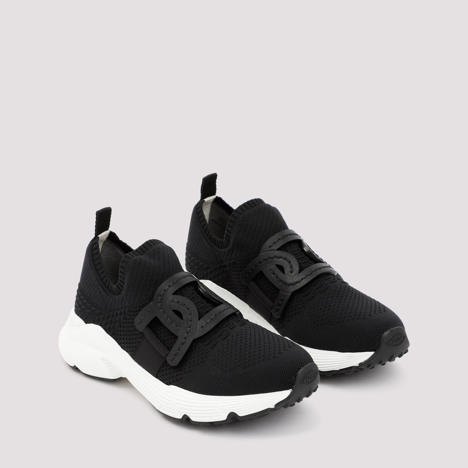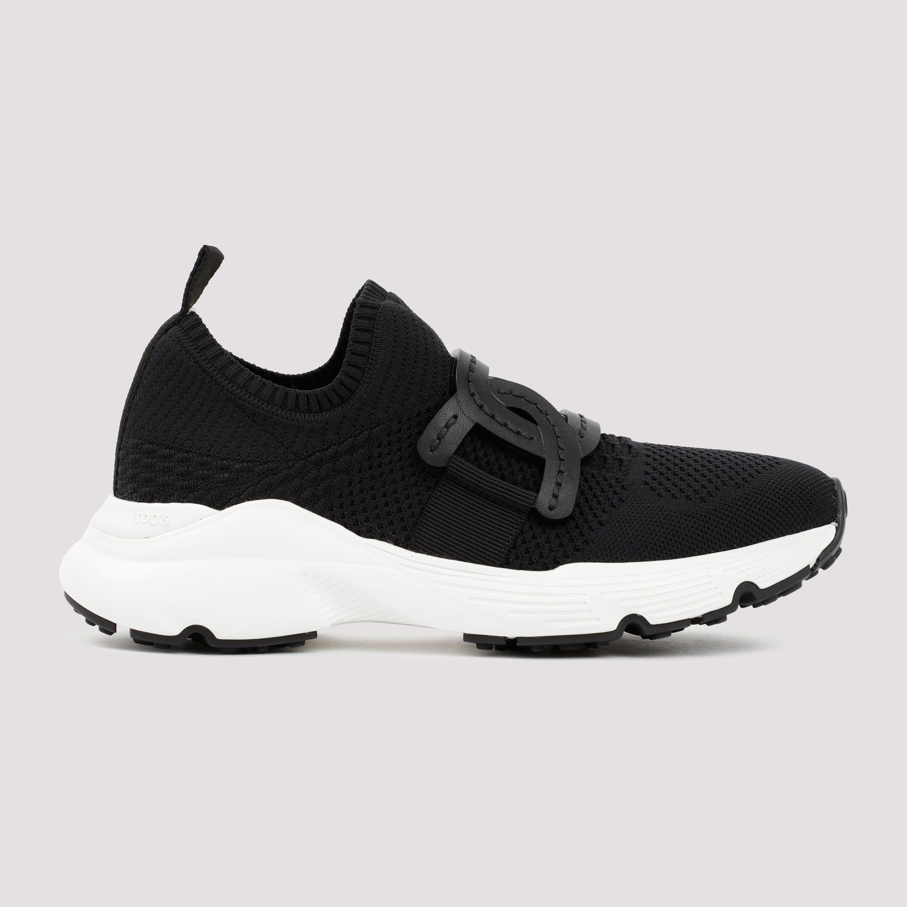 Tod`s Black Tech Fabric Sneakers. Black tech fabric upper, sock-like design, leather chain accessory, gros grain detailing and maxi rubber outsole. Logo details.