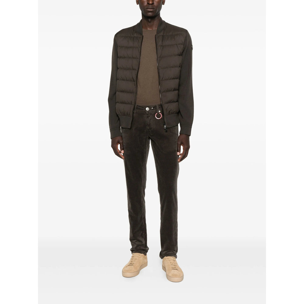 coffee brown corduroy texture five-pocket styling button fly metal-ring detail