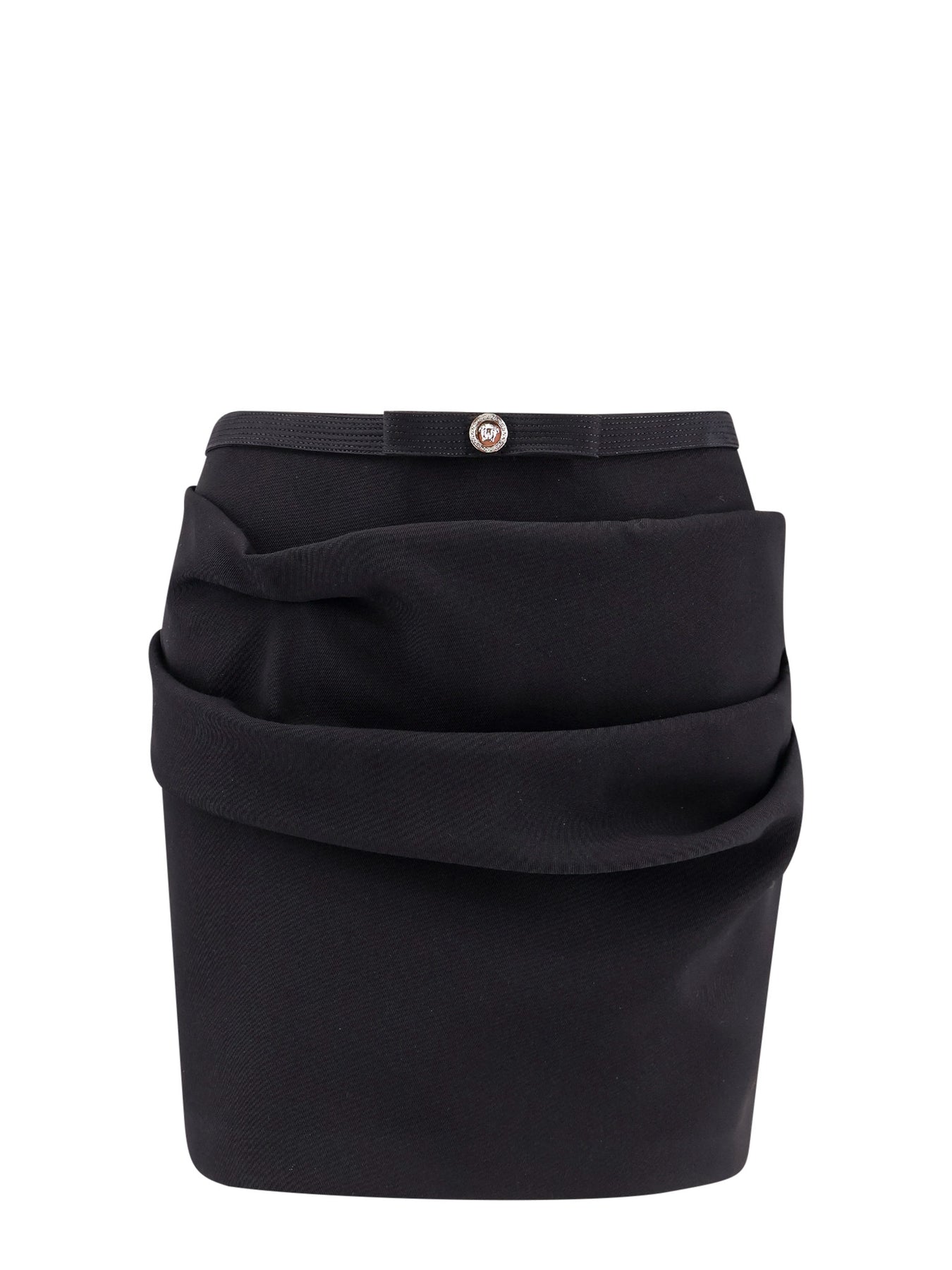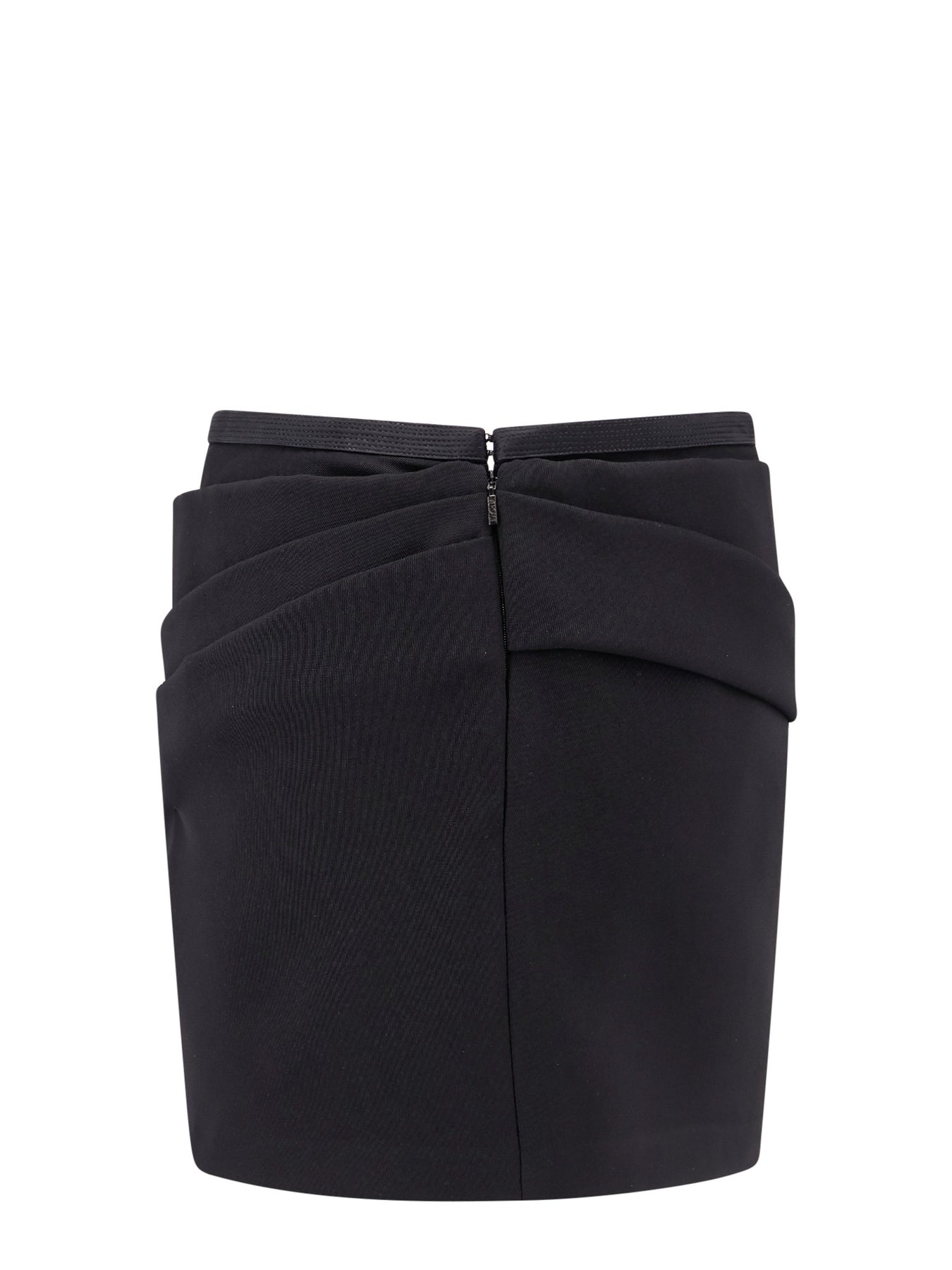 SKU: 10172691A12052_1B000 - Zip closure on the back stitched band with bow and medusa detail draped wool panels made in italy 100% responsible virgin wool